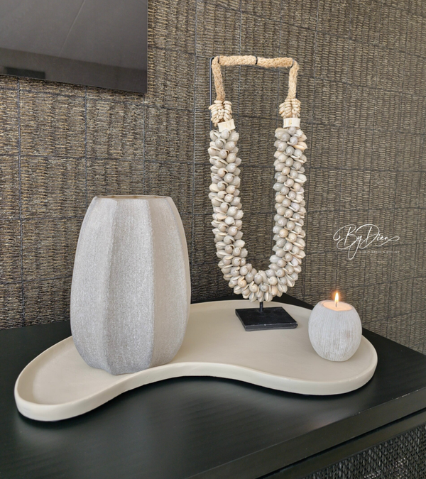 Schelpenkettingen zijn niet meer weg te denken in het interieur. Of je hem nou los neerzet in je vakkenkast of je combineert hem met accessoires op een tray, de schelpenketting is echt een lust voor het oog.