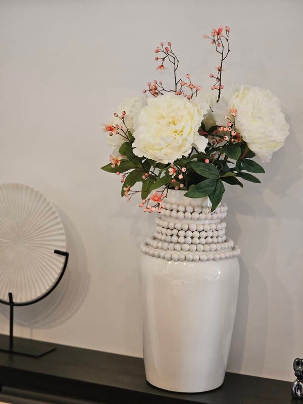 Prachtige XL Real touch pioenroos met enkele knop. Haal jou favoriete seizoensbloem het hele jaar door in huis. De kop heeft maarliefst een doorsnee van 20 cm.