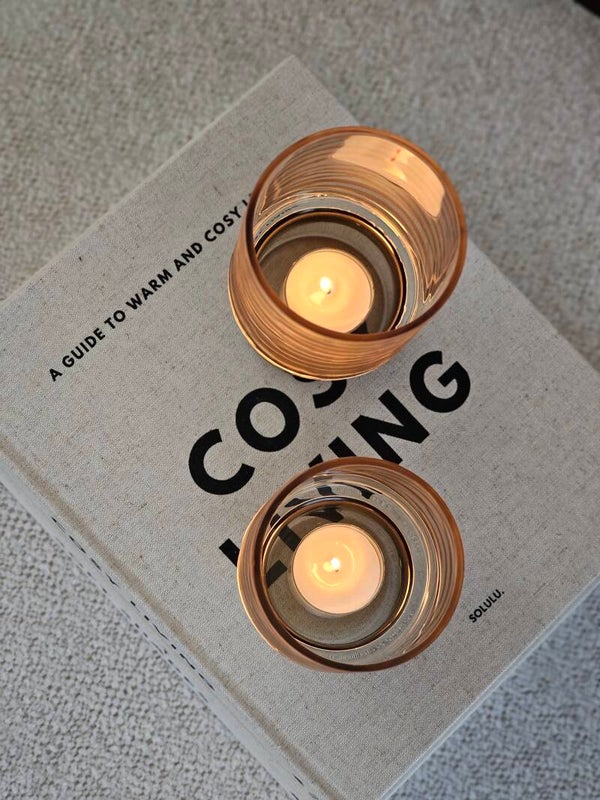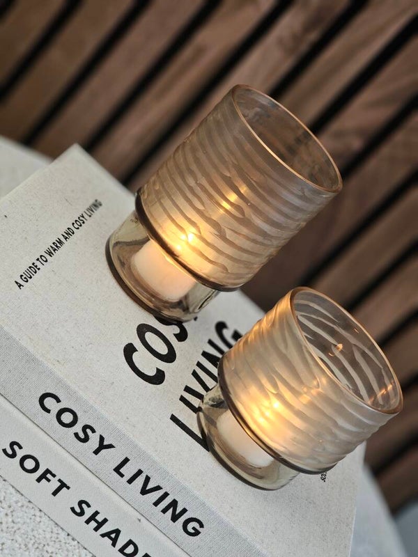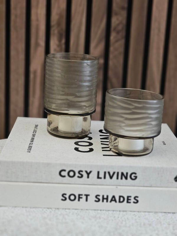 Mooie waxinelichthouder met een speelse ribbel en een gladde voet in de kleur Light Smoke