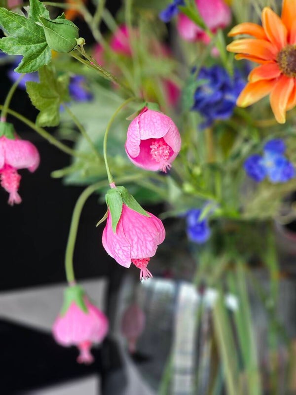 Met plukboeket Jaidy haal je het speelse effect van een zelf geplukt boeket in huis. In het boeket zit onderanderen Korenbloemen, Cosmos en Abutilon.