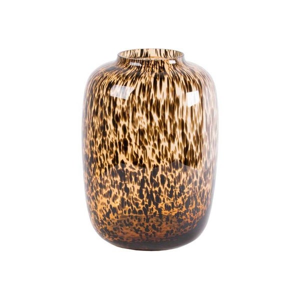 Artic S cheetah is in staat een bedrijfsruimte, woning of buitenterras in een handomdraai te verfraaien. Deze trendy vaas, onze klassieker mét unieke cheetah print in warme kleuren is een ware eye-catcher. Door zijn ronde vorm met middelgrote opening is deze vaas perfect voor een boeket met lange stelen. Of met een paar stijlvolle, losse takken, zoals pluimen of gedroogde grassen heeft de vaas een chique uitstraling. Artic Cheetah hoeft nooit in de kast, want ook leeg is de indrukwekkende bloemenvaas een decoratief accessoire in huis of in een bedrijfsruimte. Het stevige, sierlijke glaswerk past in elk interieur en staat zowel mooi op de grond als op een krukje, tafel, dressoir, sidetable, kookeiland, balie of toonbank. Zet er voor een schitterend effect een paar bijpassende waxinelichthouders met cheetahprint bij. Let op: iedere Artic vaas heeft een ander dessin en is dus uniek. De vaas die jij ontvangt, ziet er mogelijk iets anders uit dan het exemplaar op de afbeelding. De Cheetah print is helemaal on-trend. Shop 'm nu! Je maakt de vaas Artic gemakkelijk schoon met een droog en zacht doekje. Indien nodig, kun je een beetje water gebruiken en voorzichtig poetsen, zonder te hard te wrijven. Droog de vaas daarna goed af. De vazen zijn niet geschikt voor de vaatwasser.