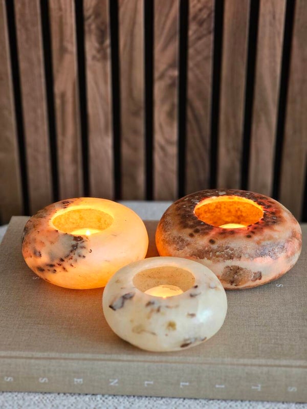 Geen enkel stuk is hetzelfde. De natuurlijke aders, kleurschakeringen en vormen zorgen ervoor dat iedere theelichthouder van albast een authentiek karakter heeft. Jij haalt dus altijd een écht one of a kind item in huis.