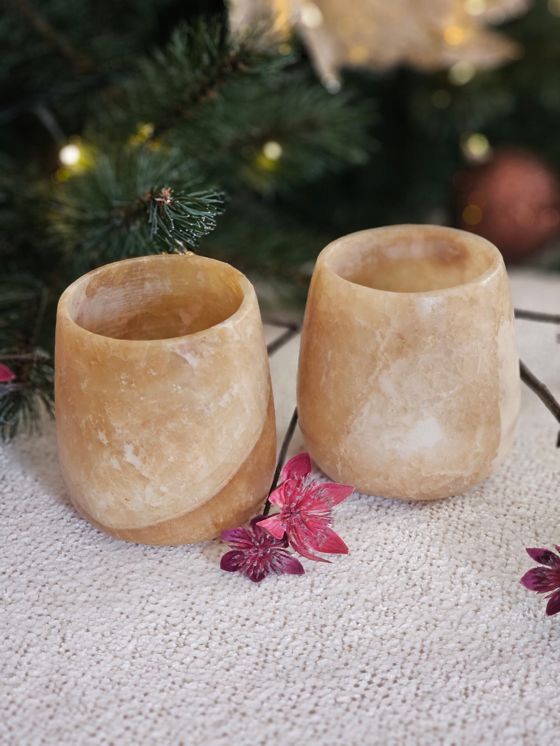 Dankzij de doorschijnende structuur laat alabaster het licht van een waxinelichtje zacht en warm door de steen heen schijnen. Het resultaat: een sfeervolle gloed die elke ruimte tot leven brengt, van woonkamer tot horecazaak.