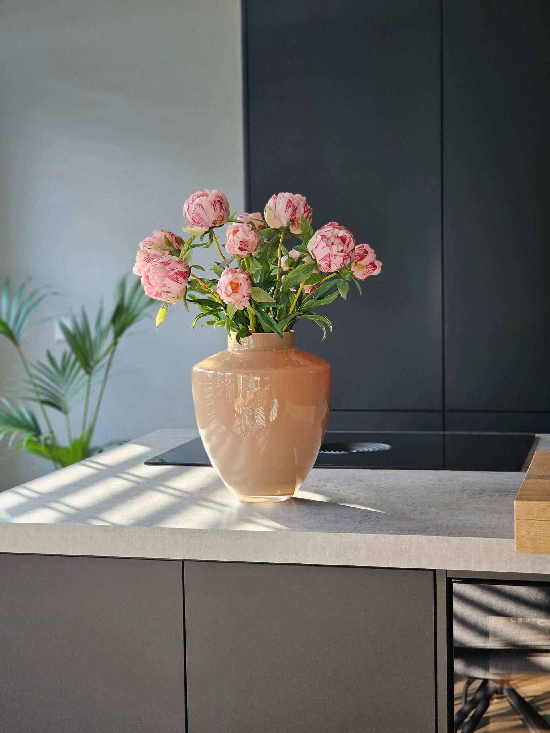 Haal een stukje magie in huis met deze prachtige real touch Pioenrozen. Door de donkere nerf in het blad, de zacht roze kleur en de verfijnde afwerking is deze pioenroos niet van echt te onderschouden.