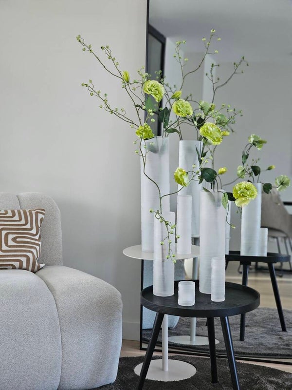 De Ona vaas is mooi op zichzelf, maar kan ook prachtige gecombineerd worden als set of met de Kalle – Frosted white windlichten.