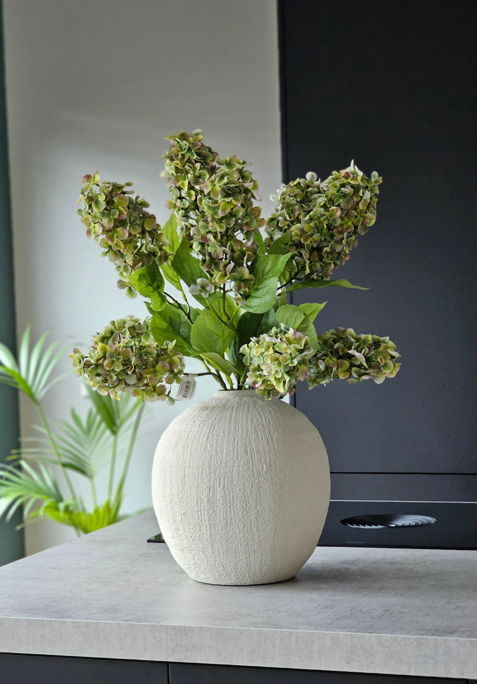 Mooie zware aardewerk vaas met grove structuur in de kleur greige.