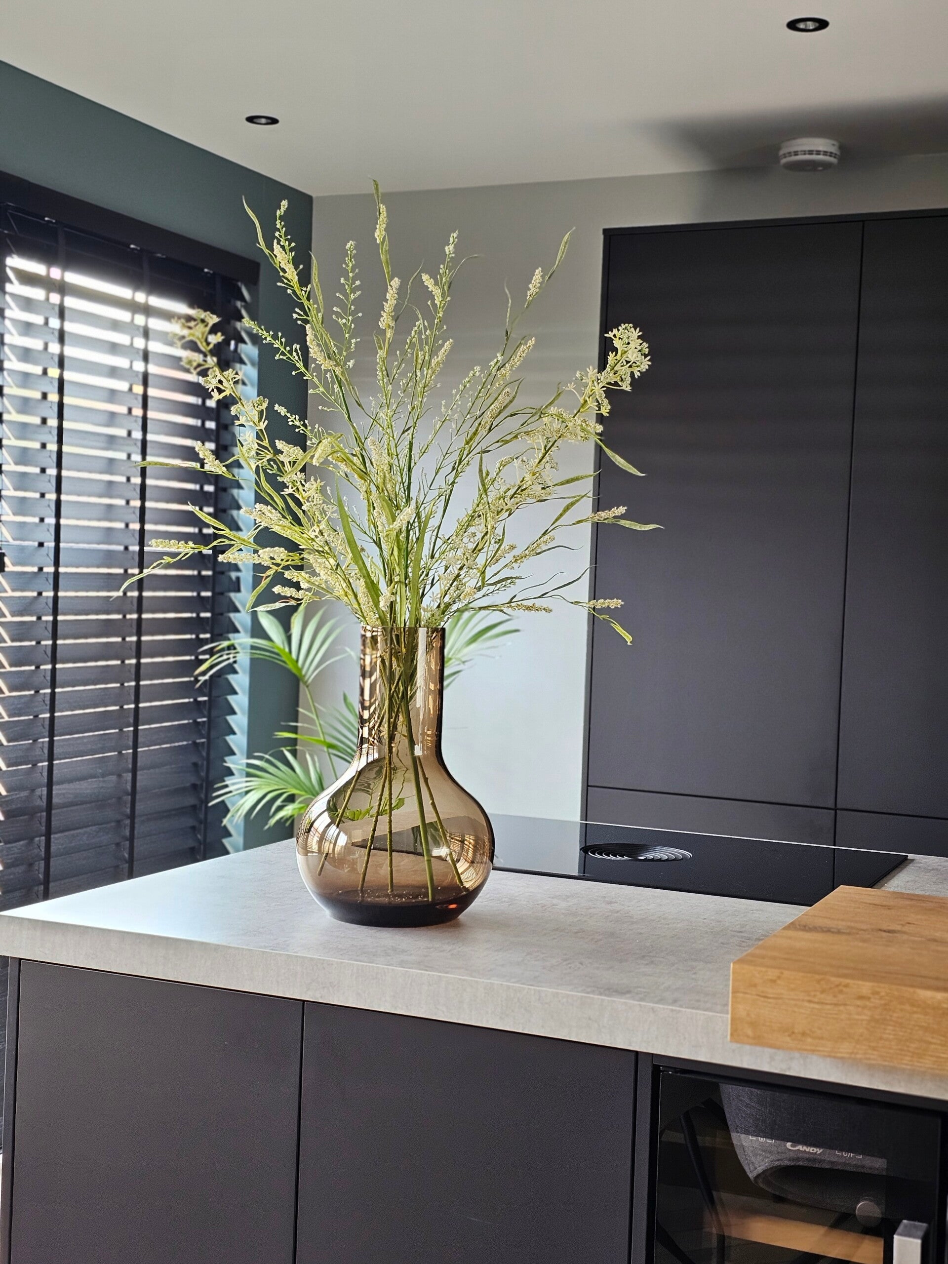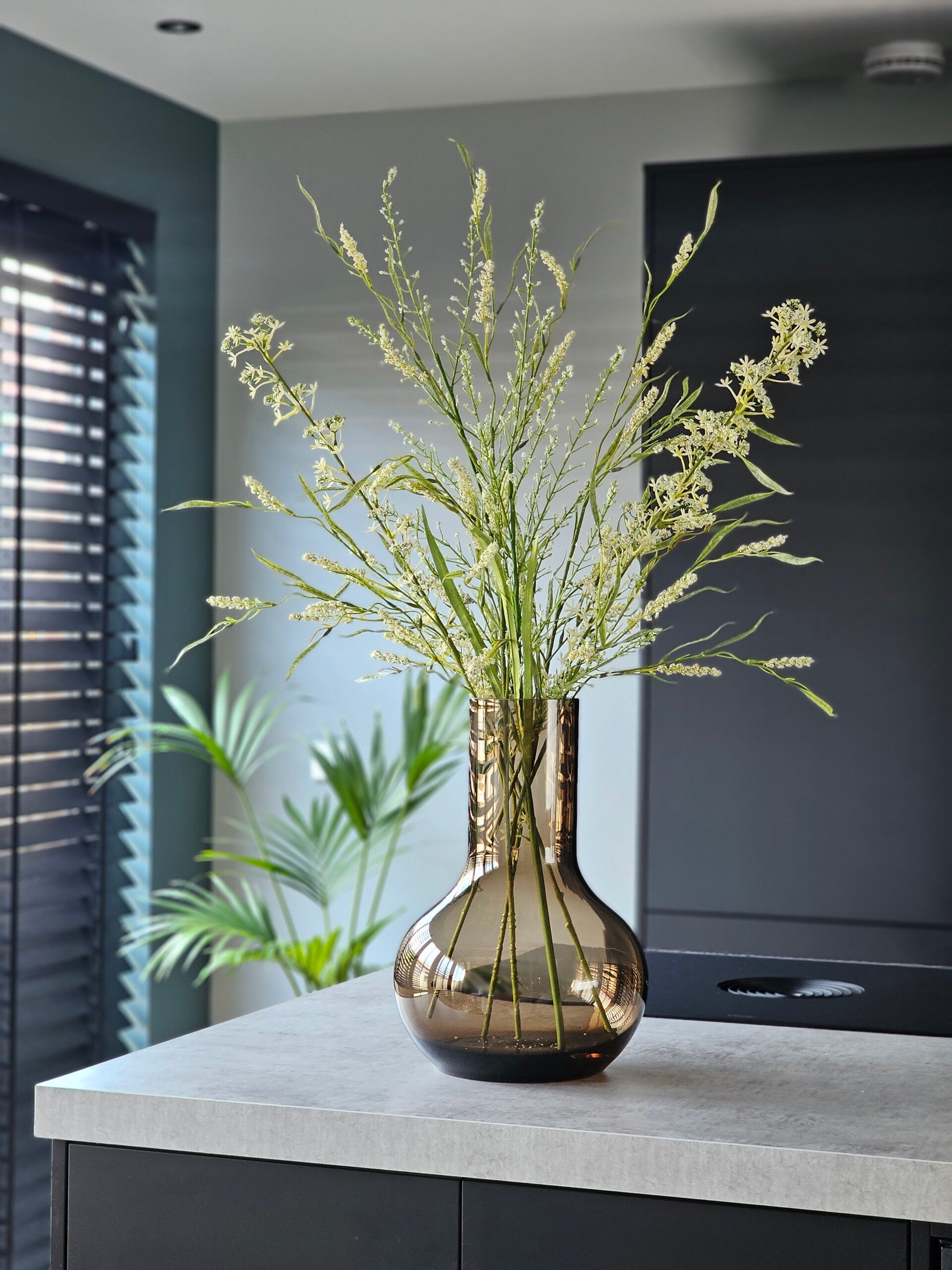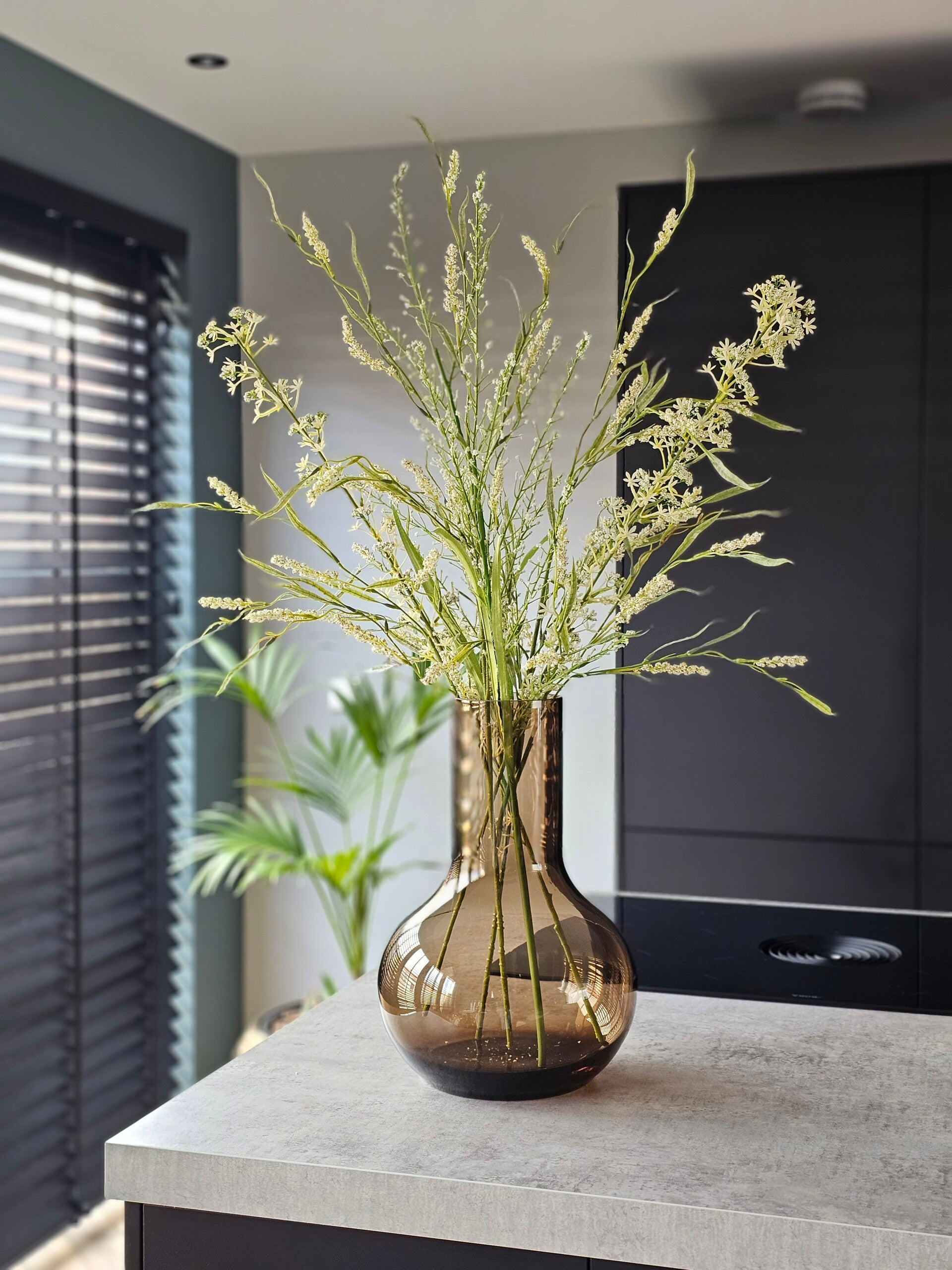 Het boeket staat op de foto in vaas Seim Taupe maat S ( 35cm)